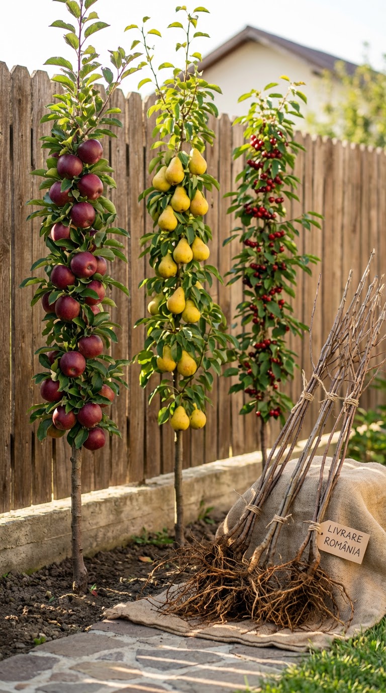 Pomii sunt altoiți, viguroși, adaptați climatului din România și pregătiți pentru plantare.