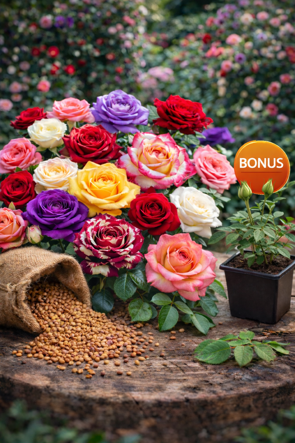 Trandafiri Spectaculoși din Semințe – Mix Culori & Modele + BONUS Mini-Rose 1 ghiveci
